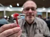 Italian fly tyer Giuseppe Finardi is intrigued by US Ora Smith's streamers featuring wings made almost exclusively from golden pheasant crest.