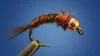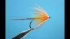 Hook: Grip 14723BL #8 Thread: Benecchi 12/0, black Hackle 1: Mallard breast feather Hackle 2: Saddle hackle, dyed hot orange Rib: Oval, gold