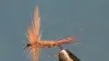 Last Chance Cripple Hook: Tiemco 102Y #12-19 Thread: Benecchi 12/0, tan Tail: Lemon woodduck barbs Shuck: Ice Dub, ginger Abdomen: Goose biot, dyed tan