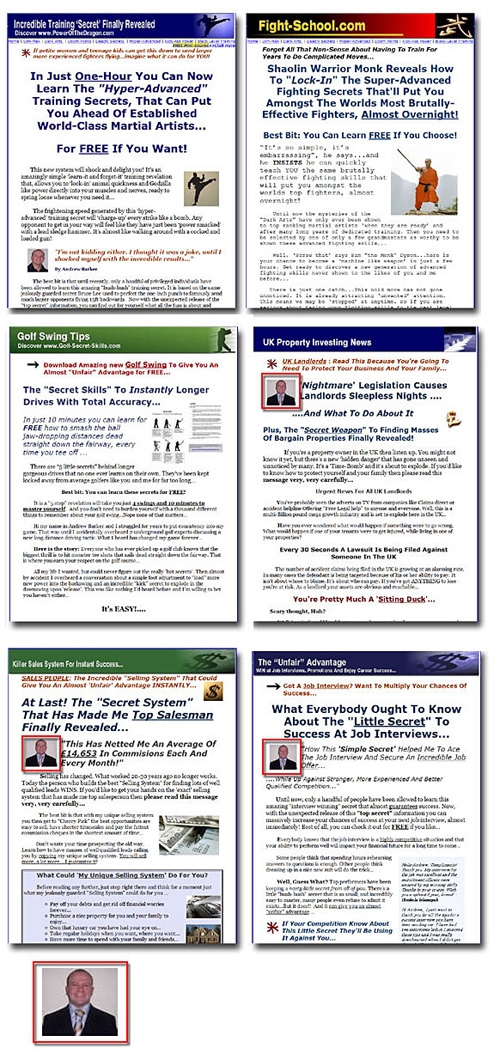 The whole idea of this type of scam is form over substance. Since there is very little substance in any of the material you try to sell, you are forced to package it in the most glorious promises. Wind your audience up so much, that no one dare say bah!