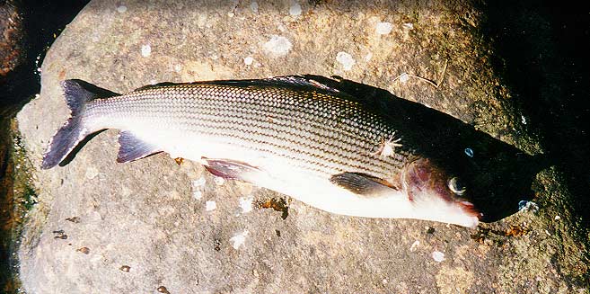 A grayling on its second last resting place, a stone - the last one will be the frying pan