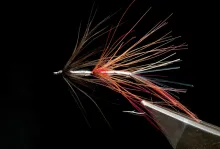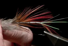 The Djihad is a bright fly with a shiny body, silver combined with black and red. Just my kind of fly. I like the Irish Shrimp tradition flies, and this is such a fly on steroids. It even uses one of my favorite materials: Golden Pheasant.