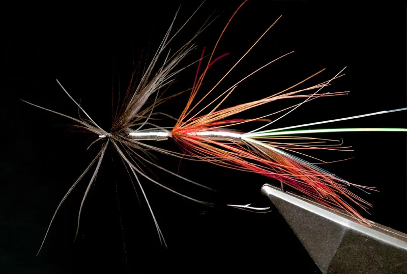 Tie down the hackle and trim surplus. Don't worry about a few stray barbs. We''ll catch them in the next step
