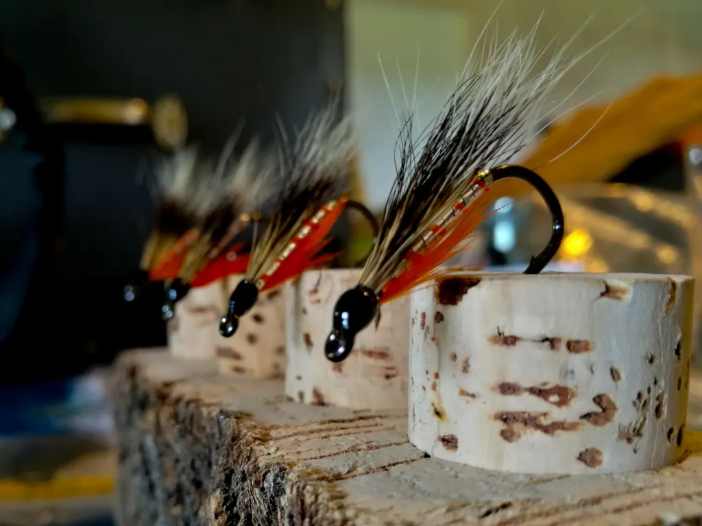 I usually leave the flies to dry in some cork. I like to give these streamers several coatings of varnish to get a nice, smooth head.