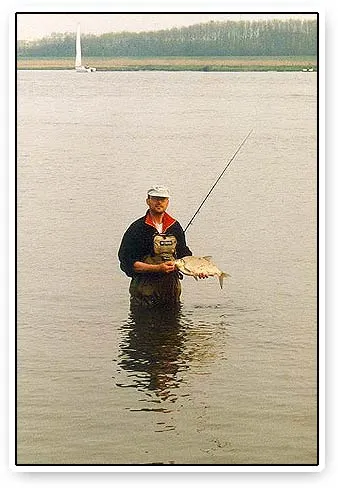 Here I am lipping my first bream - a 3-4 lbs. fish - in the Dutch river IJssel