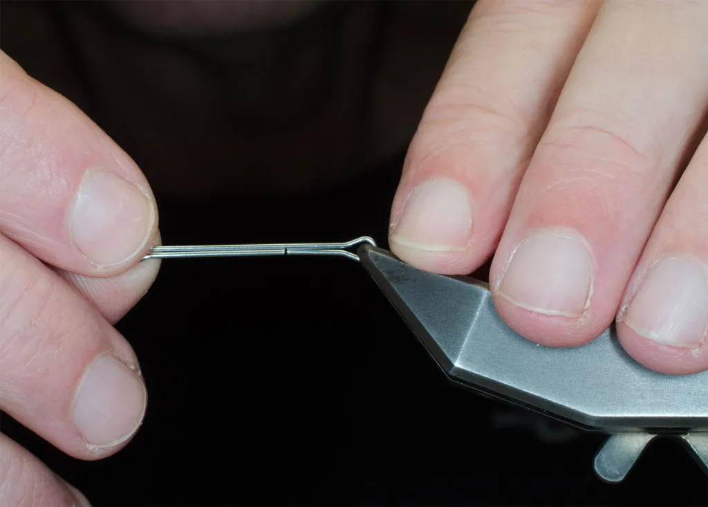You mount the shank by the flat eye. You will need to rotate your vise to tie on a "flat" shank.