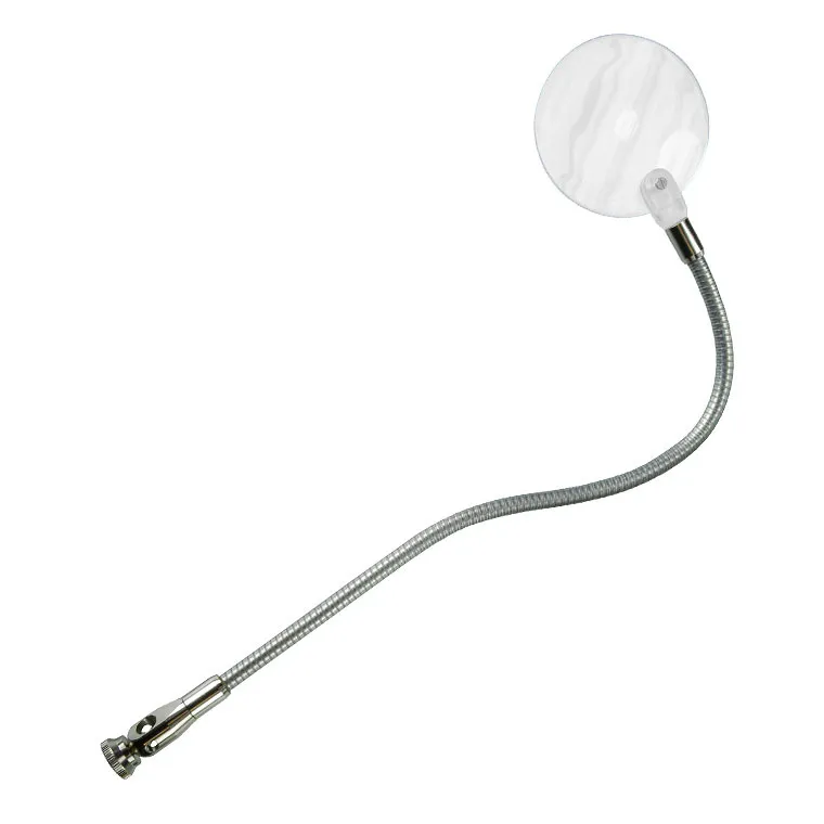 The flexible goose neck is 35 centimeters or 14 inches long and the base can be mounted on any standard vise stem.