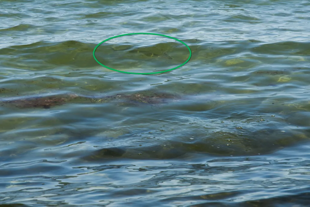 The shadow in the ring is a very decent mullet moving along the beach quite close to the shore.