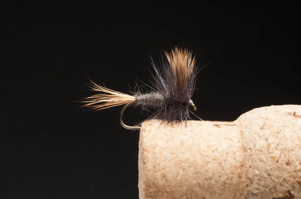 An Adams tied with deer hair wings. I bought this fly together with a bunch of others in the Ridge Pool tackle Shop in Ballina, Ireland to fish for trout in Lough Conn where we needed some high floating dries for the wind swept lake.