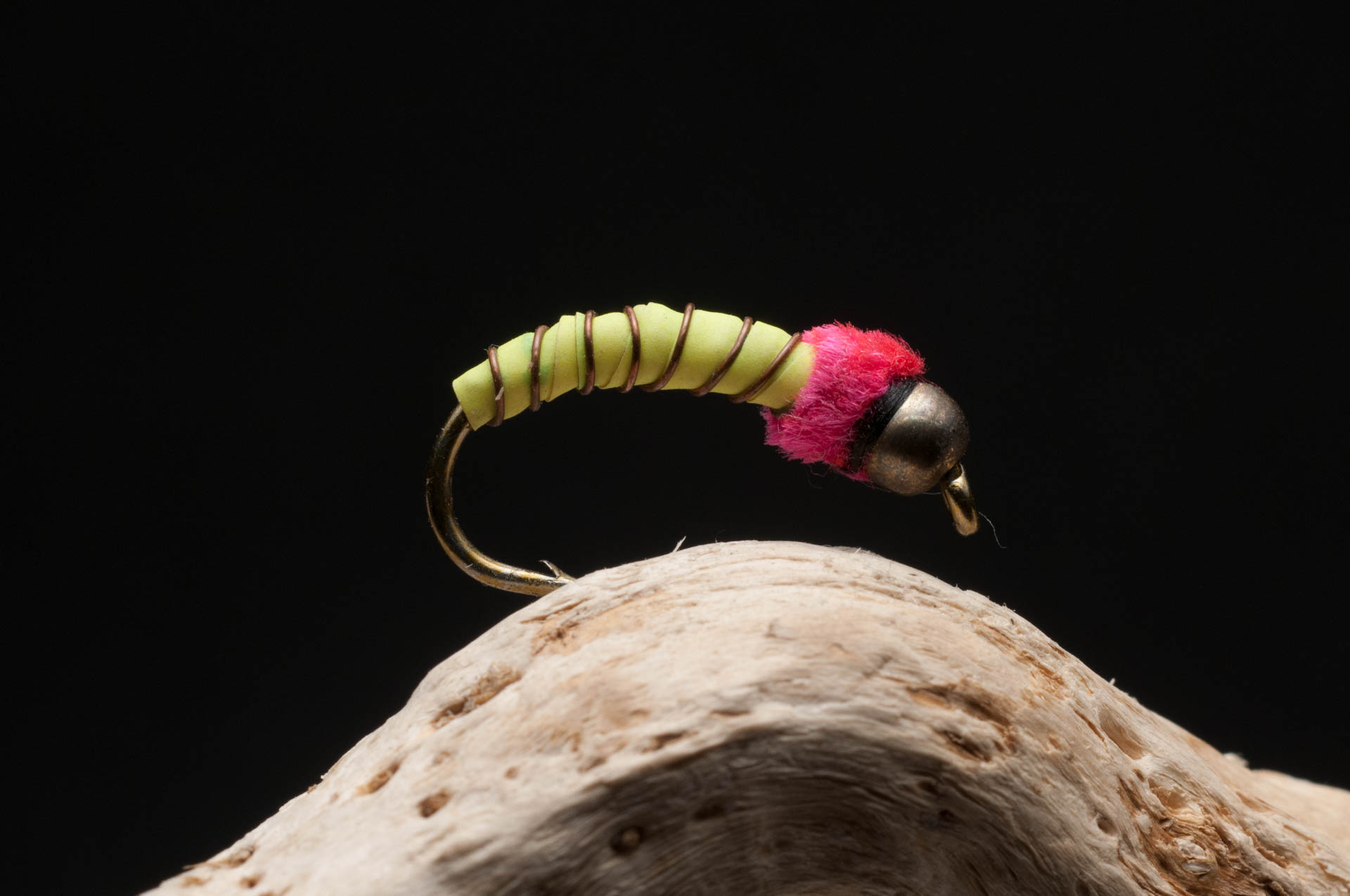 A bright and heavy nymph given to me by Dutch Bart van der Schrieck to use for bream fishing in the river Ijssel in the Netherlands. It worked like a charm!